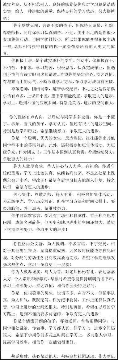 综合评价中也应该包括对学生身体素质发展情况的评价,帮助学生意识到健康身体素质的重要性。参考评语: